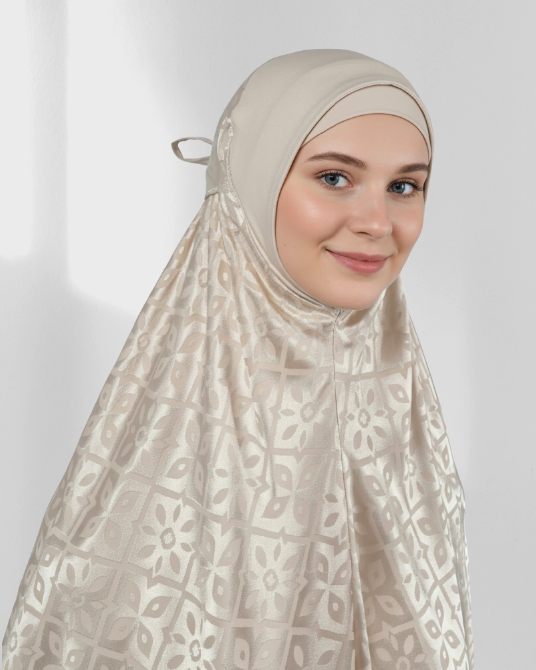 Accueil Robe de la Priere Anggun Collection Anggun Luxe Collection Anggun Luxe Ayuna Crème Robe de Prière Voyage Satin